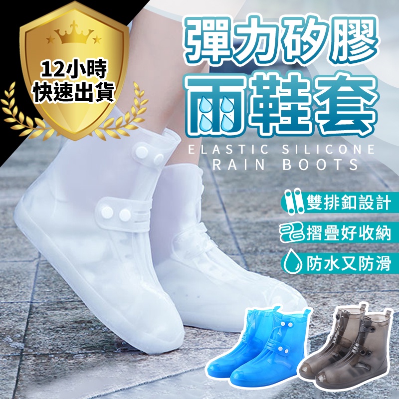 日韓爆款 雙排釦新款防水硅膠雨鞋套 穿不爛 便攜帶 高彈力 易穿取